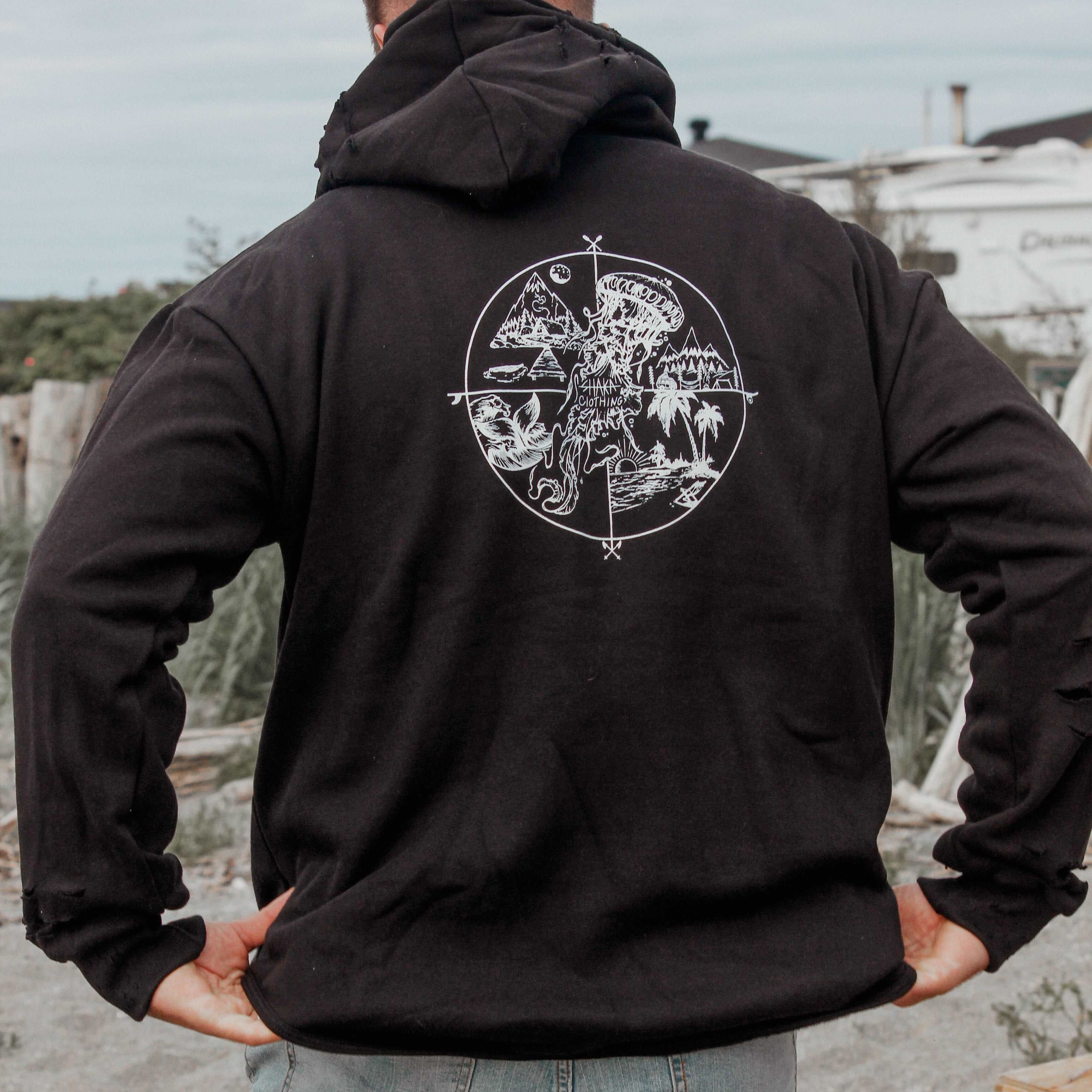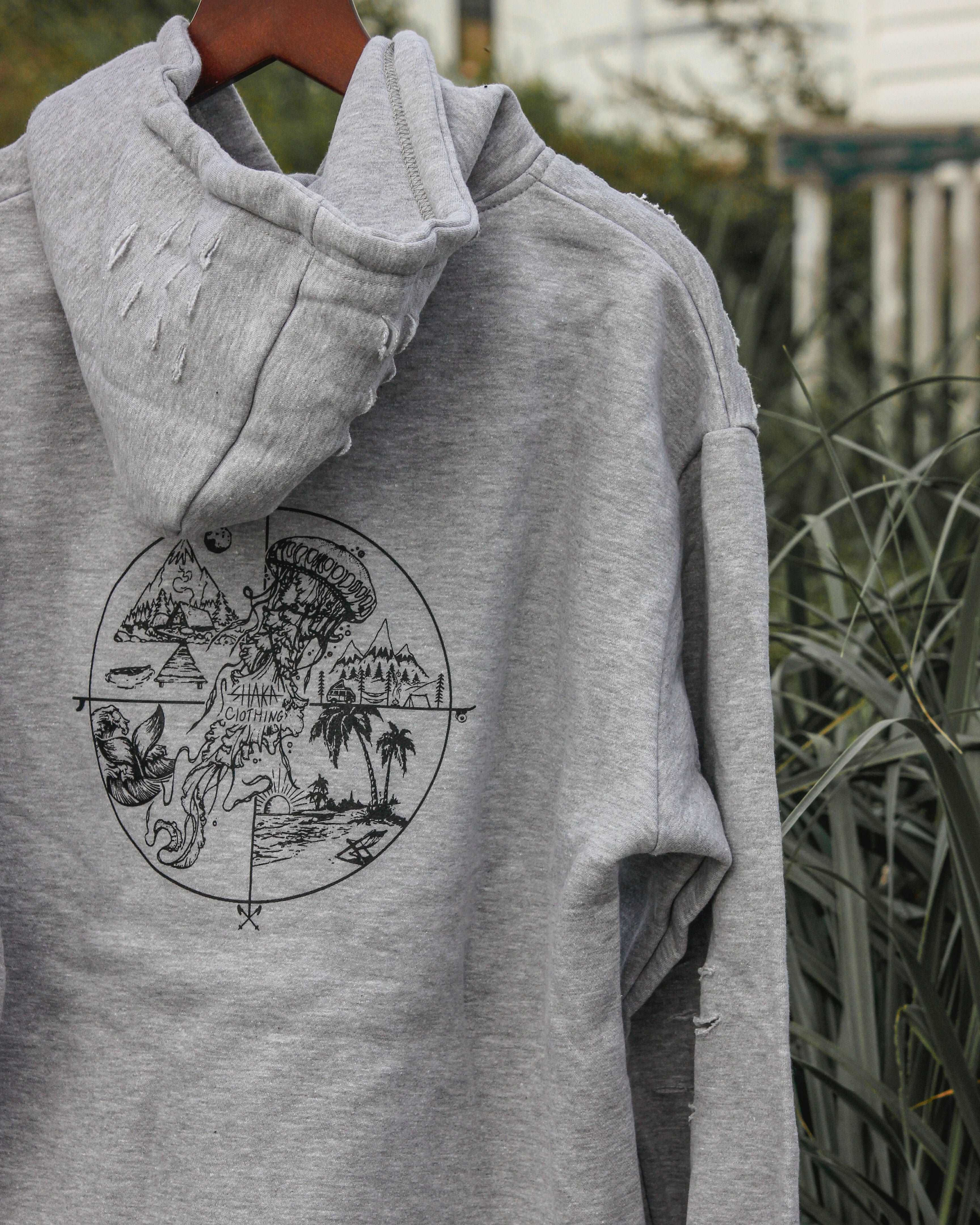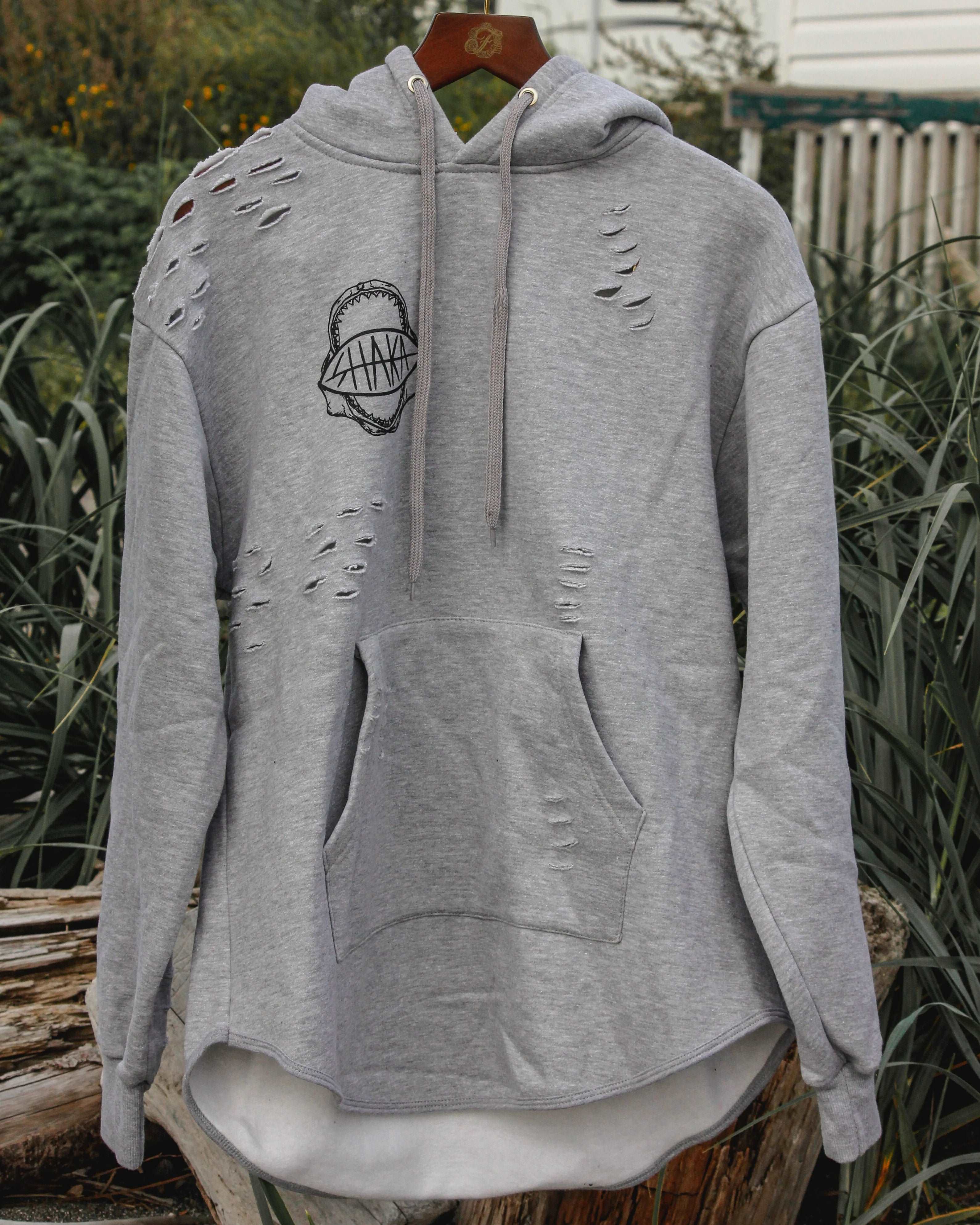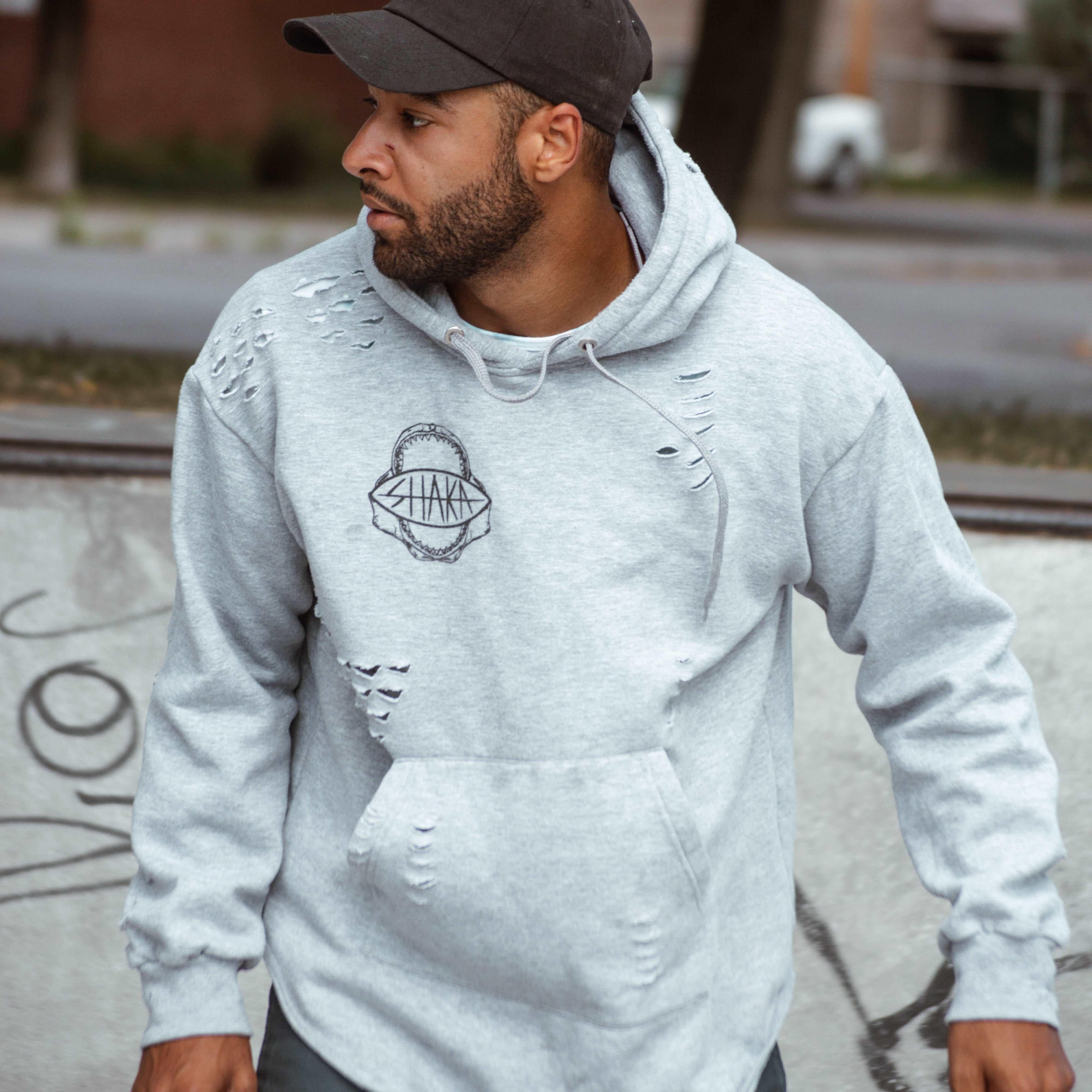 Don't compromise on style or comfort. Elevate your wardrobe with the Elegonte Distressed SHAKA Hoodie and make a statement wherever you go.